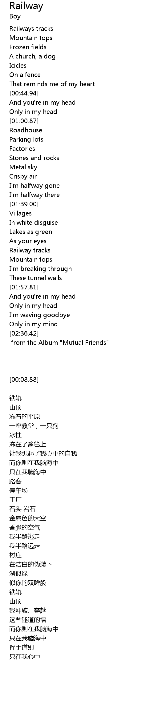 | [01:48.80] | Railway tracks |