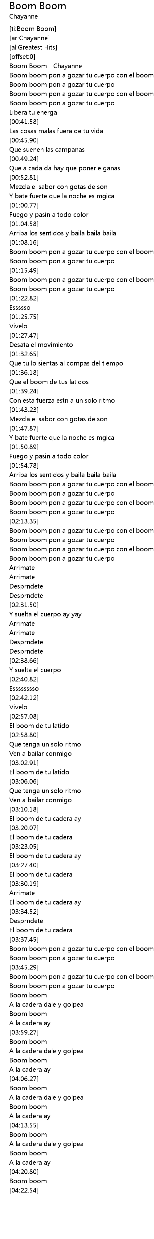 | [00:25.65] | Boom boom pon a gozar tu cuerpo con el boom |