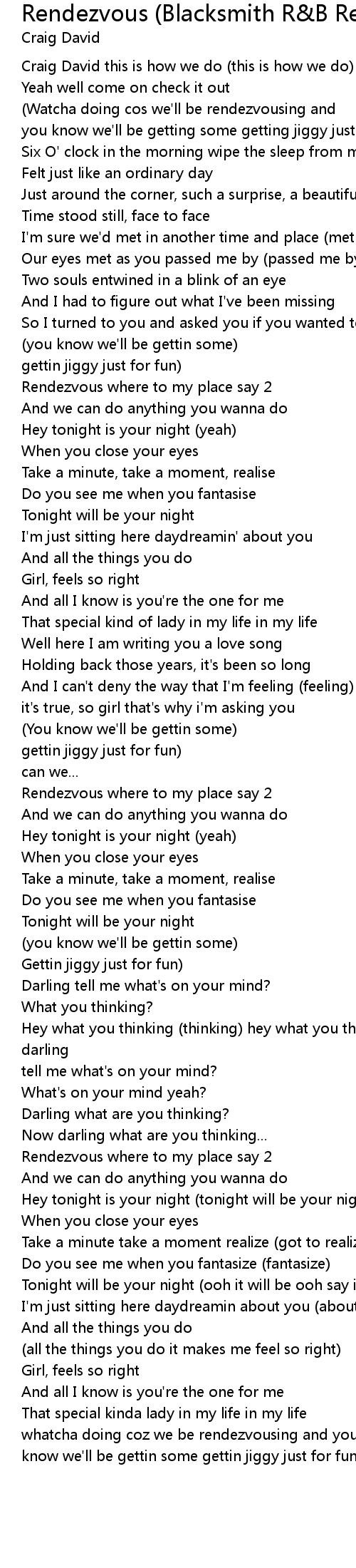 (Watcha doing cos we'll be rendezvousing and |