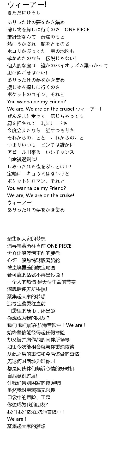 | [00:36.89] | 捜し物を探しに行くのさ ONE PIECE |