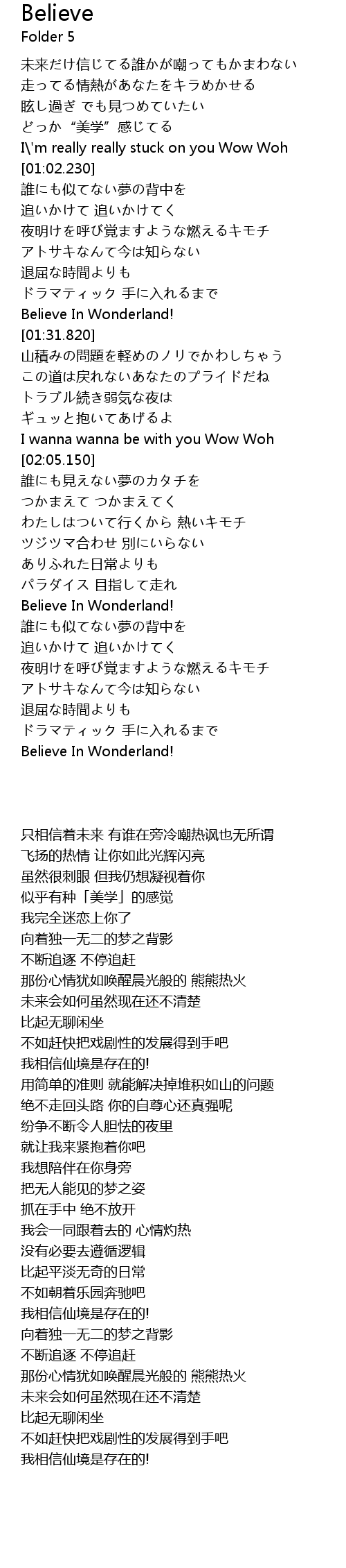 | [01:24.930] | Believe In Wonderland! |