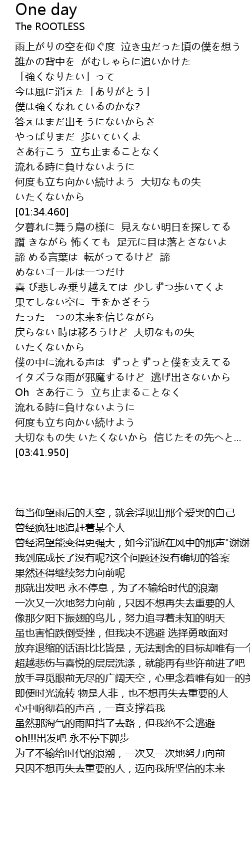 | [02:50.340] | 僕の中に流れる声は ずっとずっと僕を支えてる |