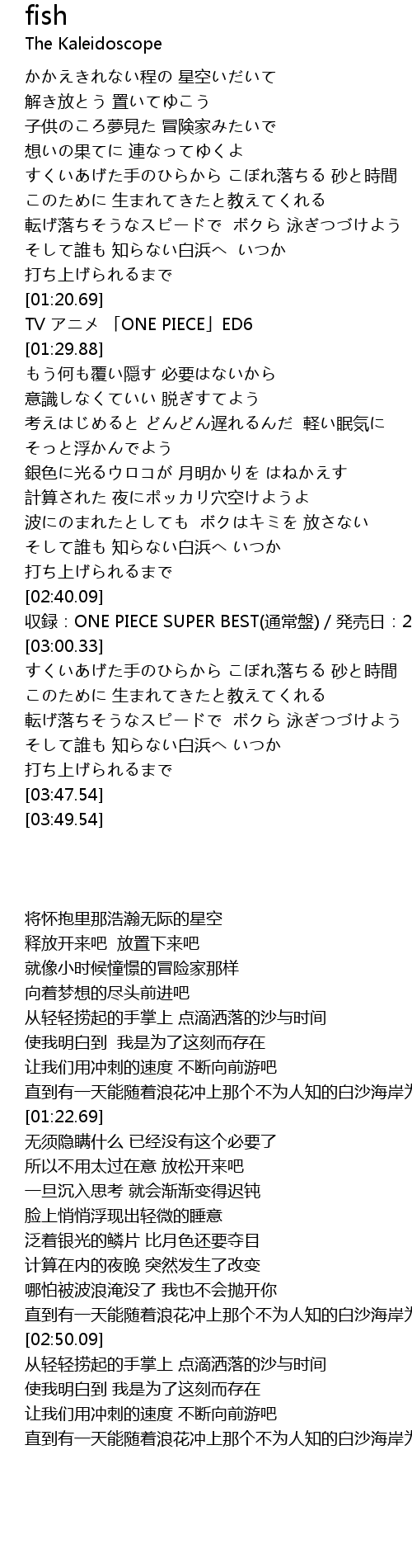| [02:50.09] | 収録:ONE PIECE SUPER BEST(通常盤)/発売日:2007/03/07 |