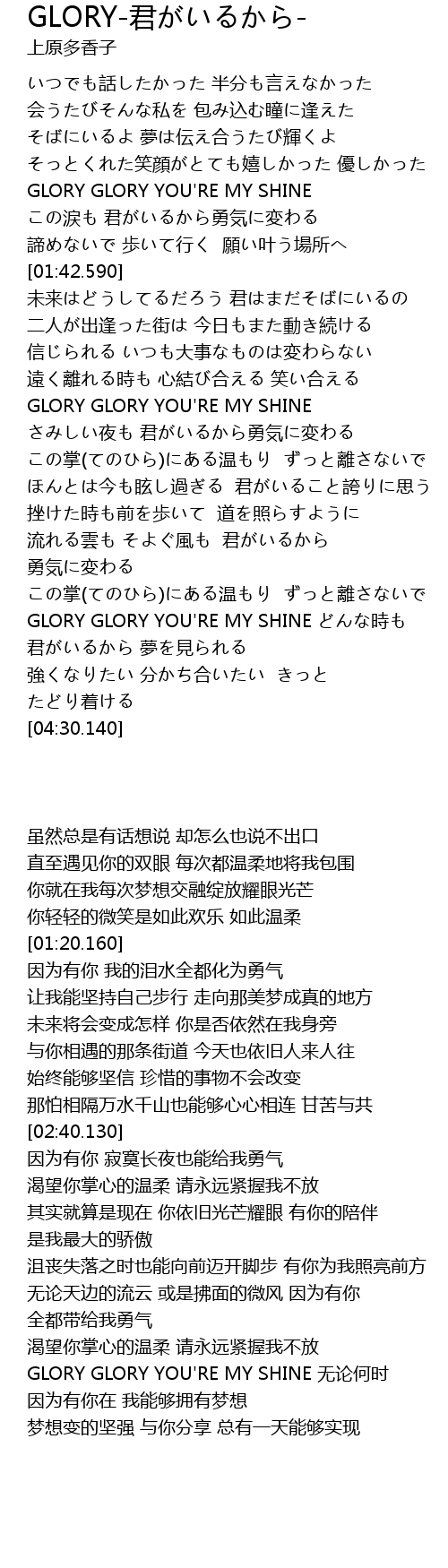 | [02:40.130] | GLORY GLORY YOU' RE MY SHINE |