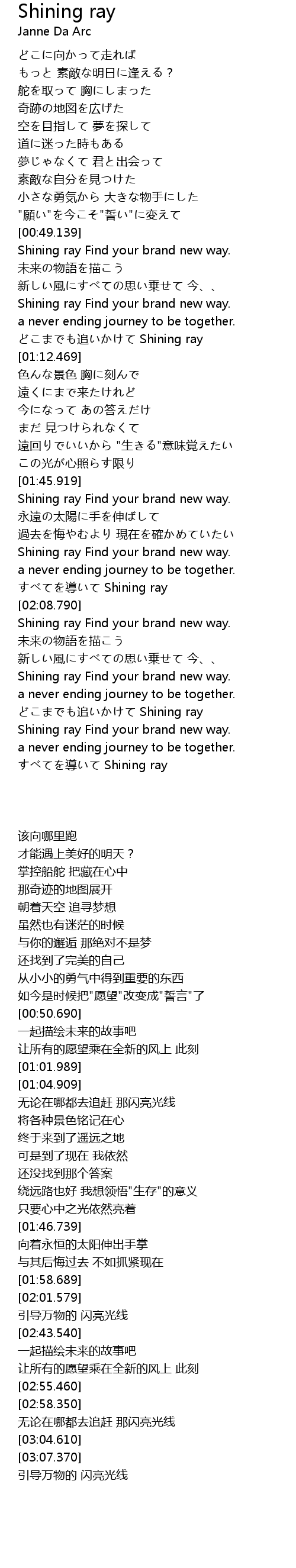 | [01:08.390] | どこまでも追いかけて Shining ray |