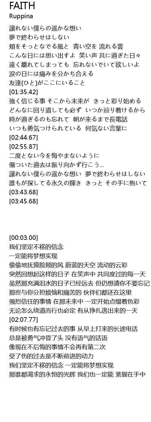 | [03:14.59] | 譲れない僕らの遥かな想い 夢で終わらせはしない |