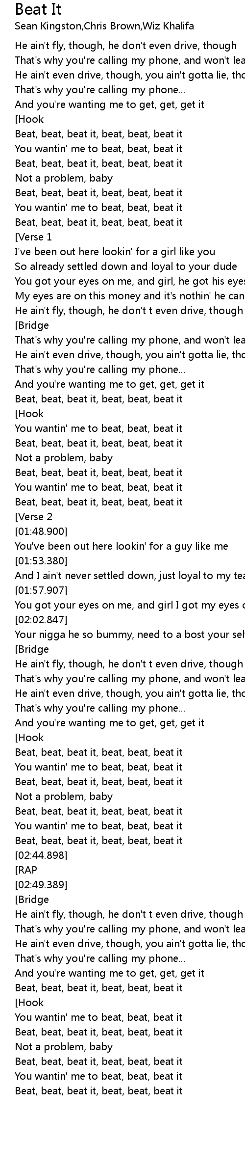 | [01:44.698] | Beat, beat, beat it, beat, beat, beat it |