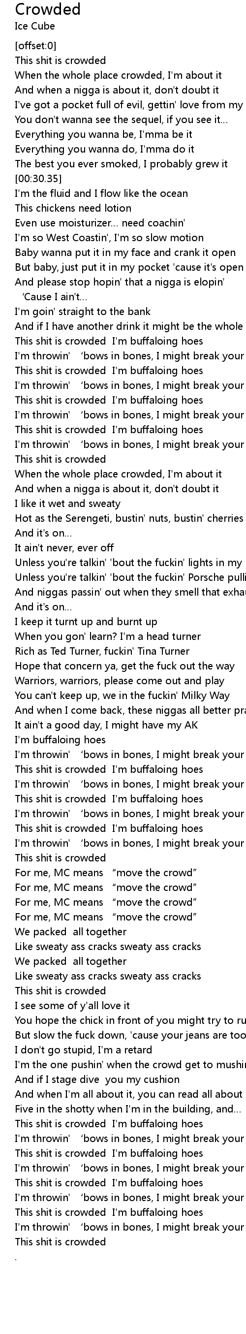 | [01:16.22] | When the whole place crowded, I' m about it |