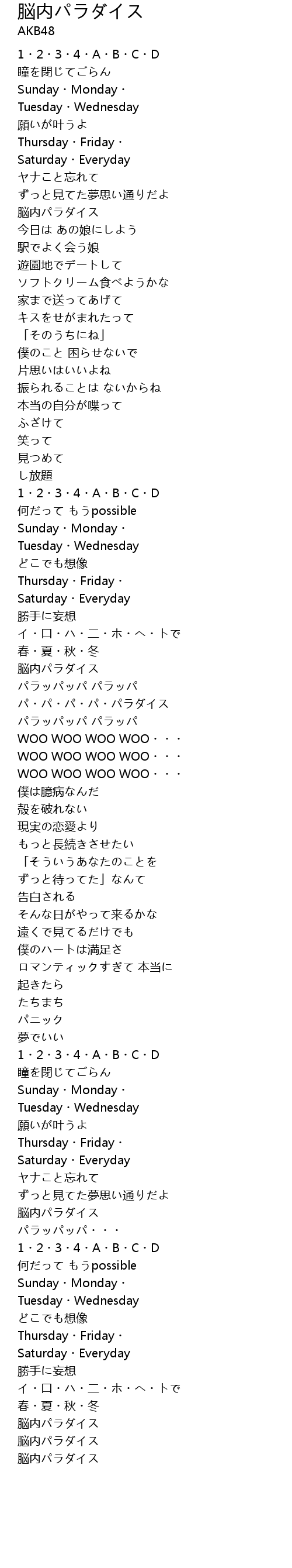 | Song | 脳内パラダイス |