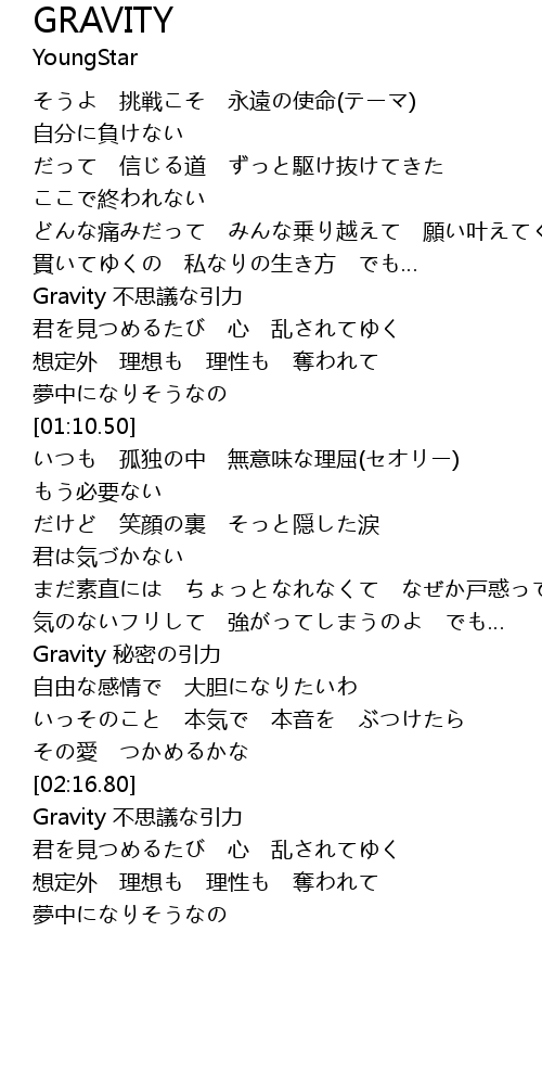 | [02:34.80] | Gravity bù sī yì yǐn lì |