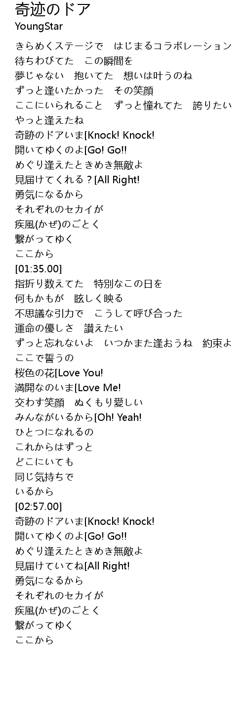 | [03:11.80]奇跡のドアいま[Knock! Knock!] | |