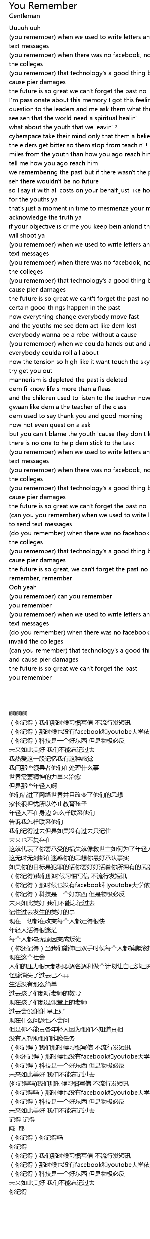 (you remember) when we used to write letters and we never use to send text messages |