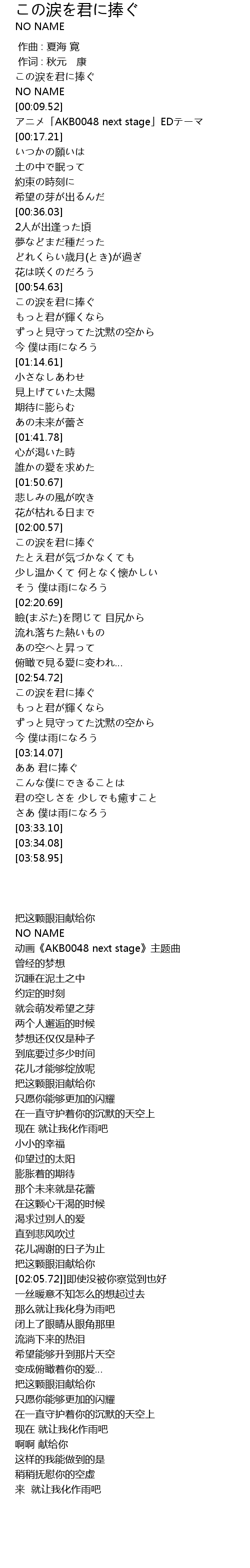 | [02:55.68] | この涙を君に捧ぐ |