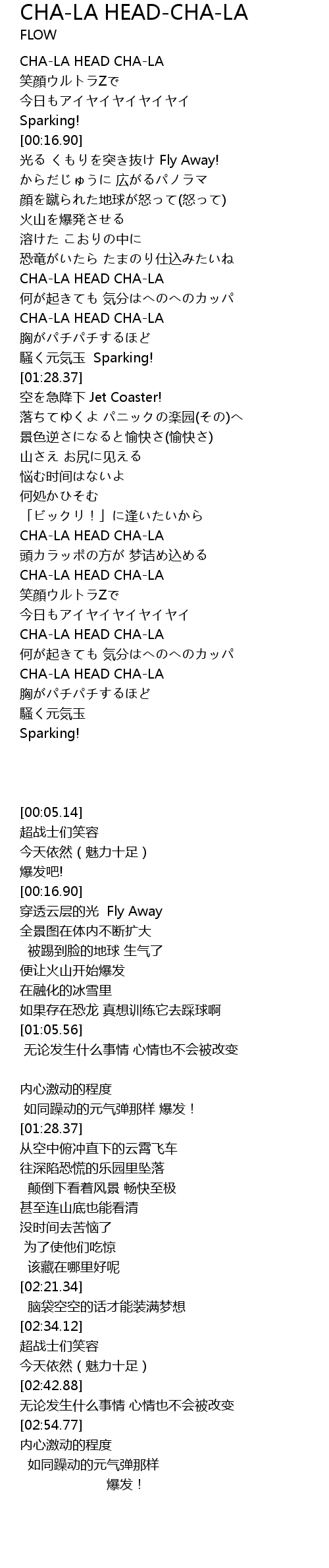 | [02:34.12] | CHA-LA HEAD CHA-LA |