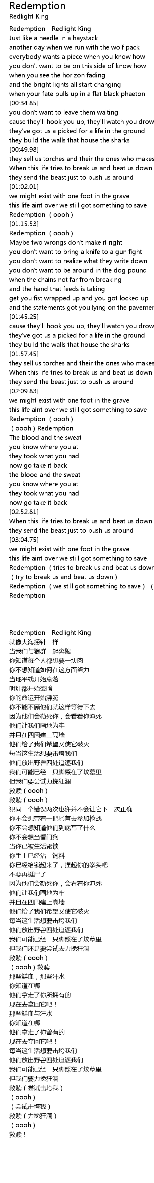 | [00:00.48] | Redemption Redlight King |