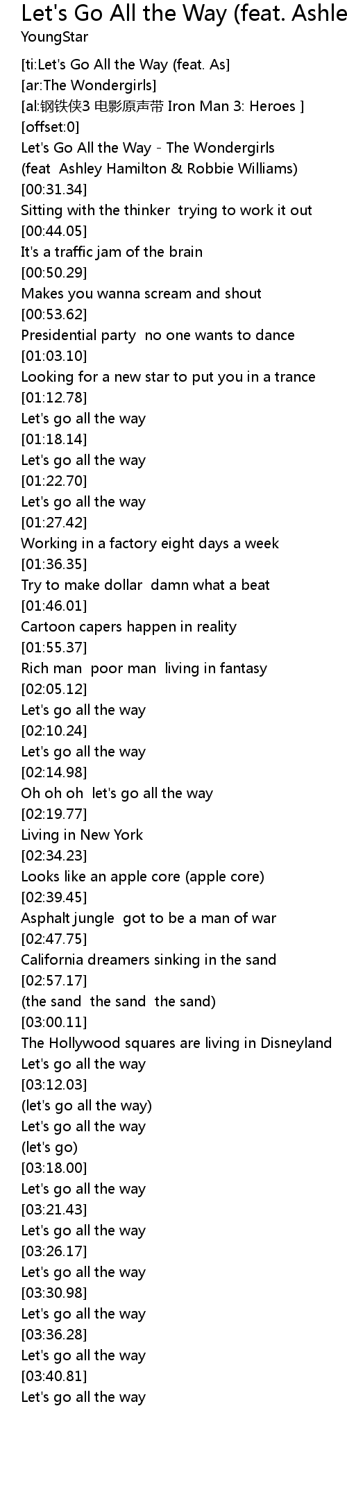 | [00:26.28] | Let' s Go All the Way The Wondergirls |