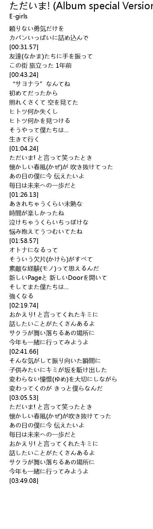 | [03:06.00] | ただいま! と言って笑ったとき |