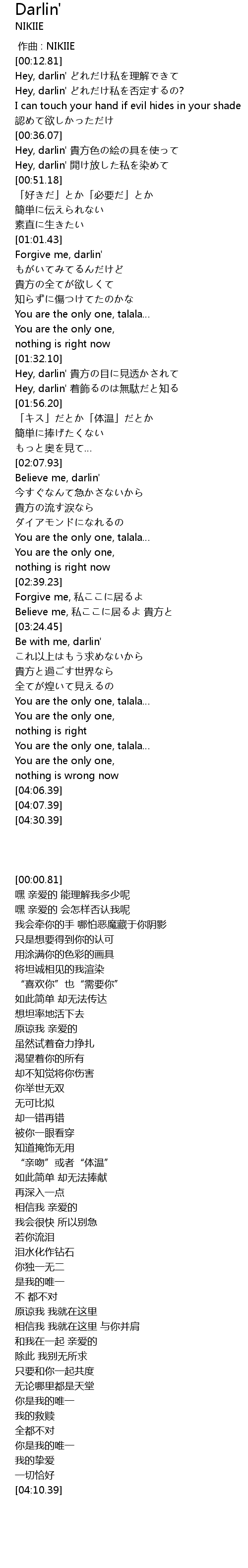 | [00:00.00] | zuo qu : NIKIIE |