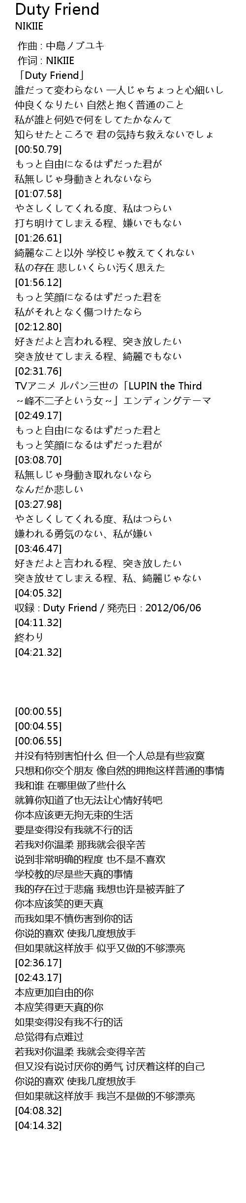 | [00:00.55] | 「Duty Friend」 |