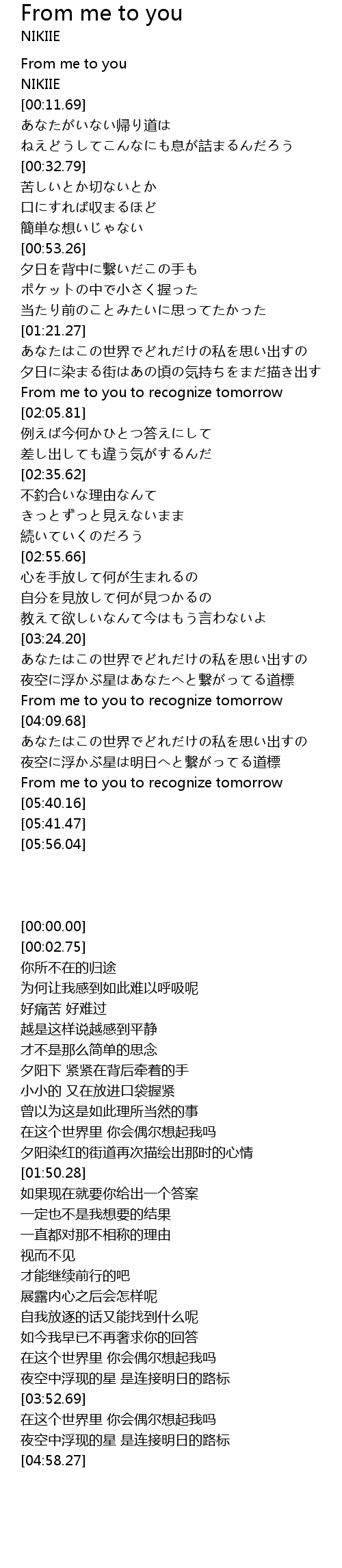 | [03:27.22] | あなたはこの世界でどれだけの私を思い出すの |