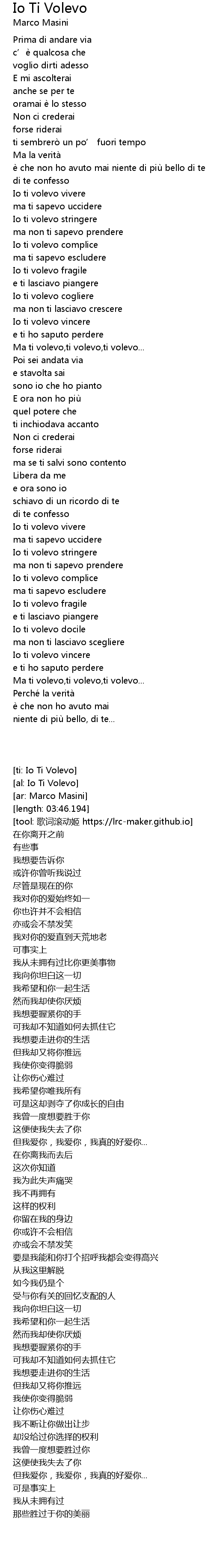 | [01:39.810] | Ma ti volevo,ti volevo,ti volevo... |