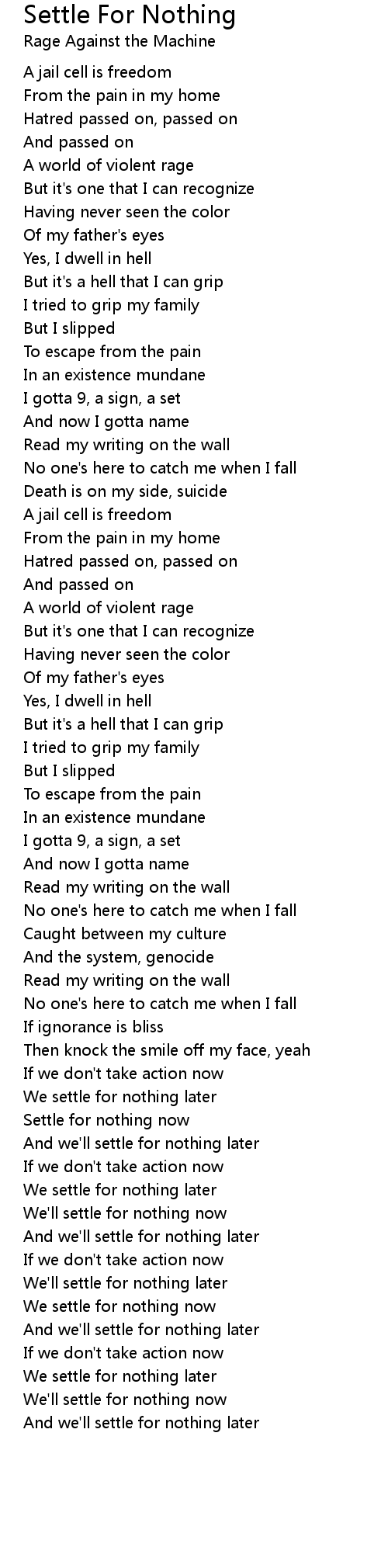 We settle for nothing later |