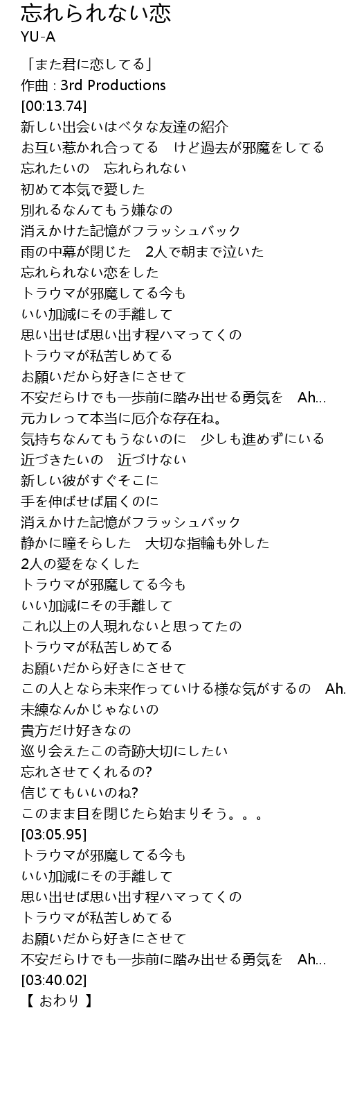 | [03:14.95] | 思い出せば思い出す程ハマってくの |