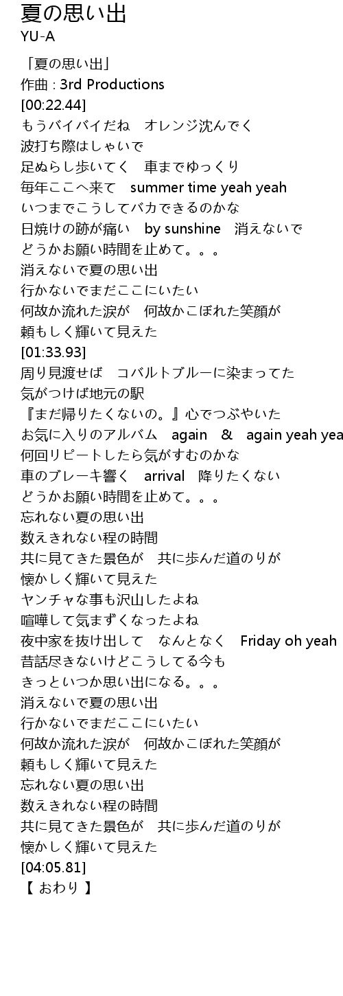 | [00:47.34] | 毎年ここへ来て summer time yeah yeah |