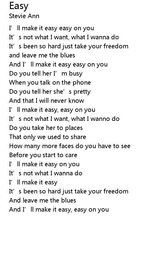 | And I’ll make it easy, easy on you |