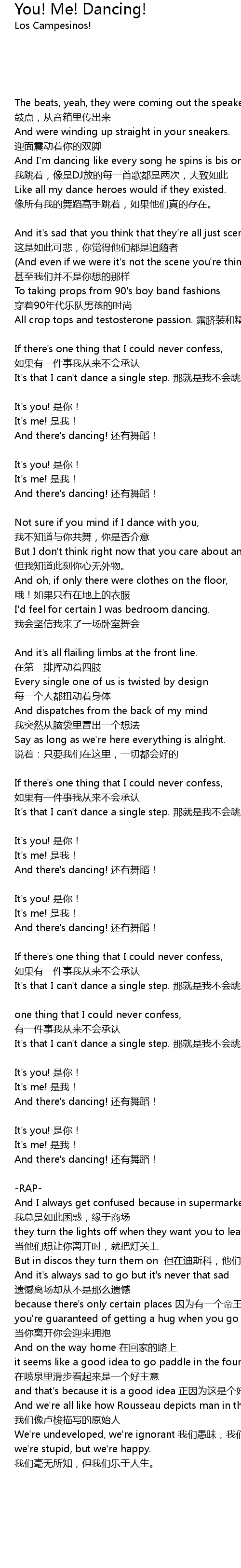 | [03:51.61] | It' s that I can' t dance a single step. nà jiù shì wǒ bú huì tiào wǔ |