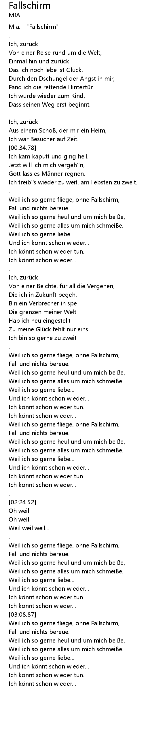 | [00:00.33] | Mia. " Fallschirm" |