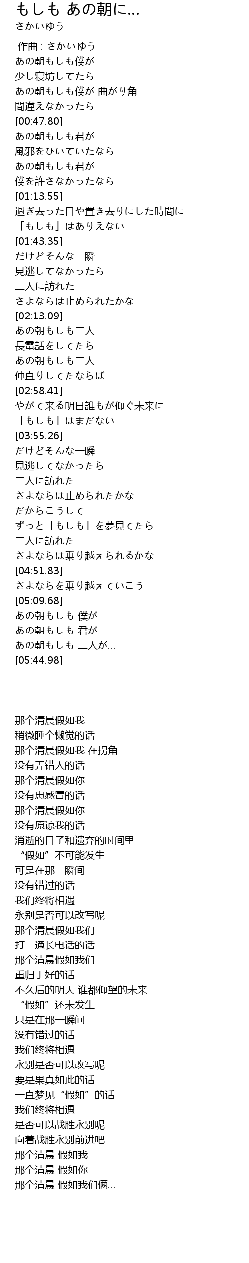 | [00:36.06] | あの朝もしも僕が 曲がり角 |