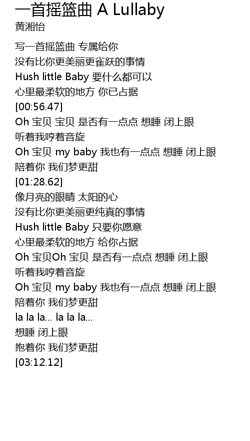 | [00:57.15] | Oh 宝贝 宝贝 是否有一点点 想睡 闭上眼 |