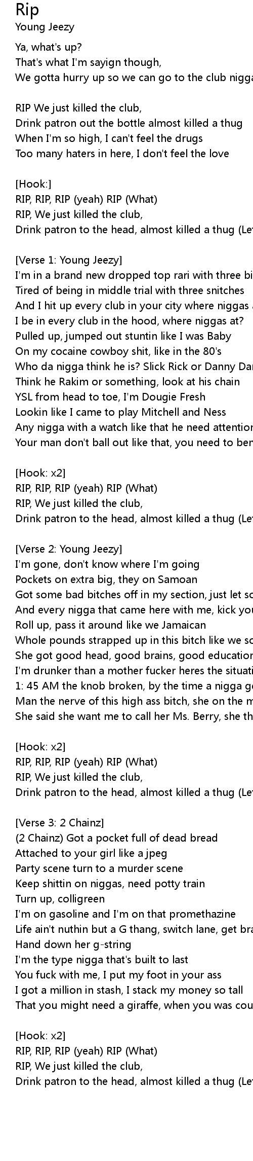 RIP, RIP, RIP (yeah) RIP (What)