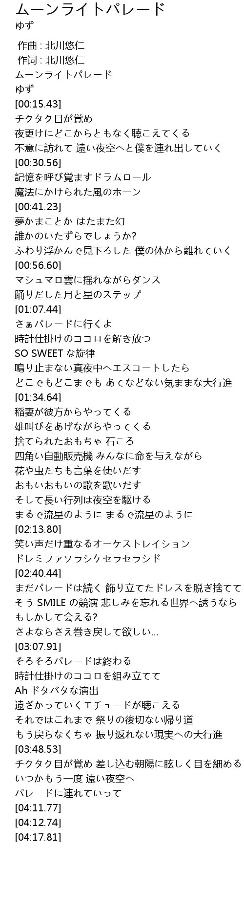 | [04:03.48] | いつかもう一度 遠い夜空へ パレードに連れていって |