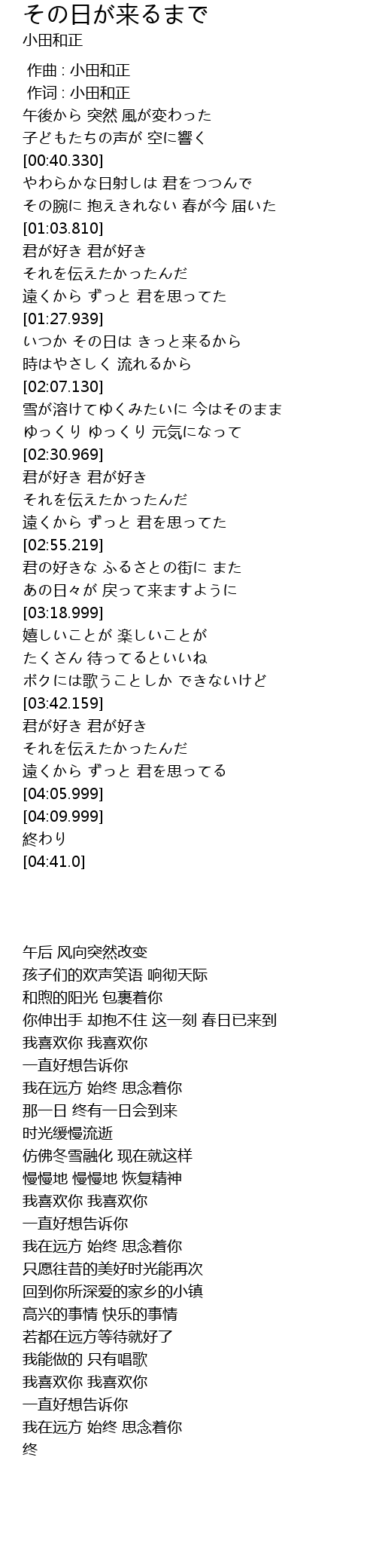 | [00:42.120] | やわらかな日射しは 君をつつんで |