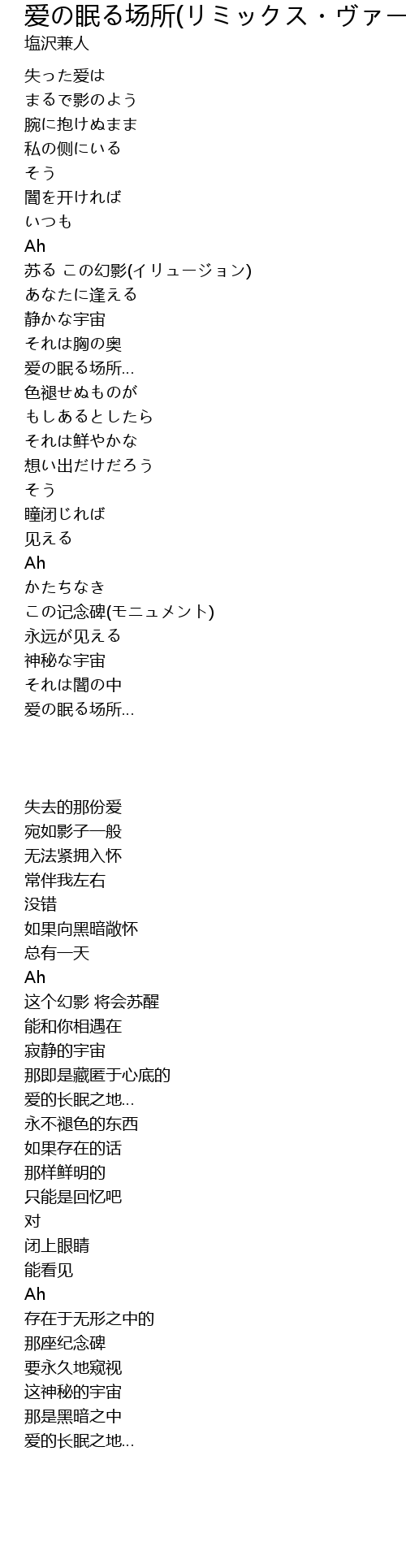 | [02:03.880] | 爱の眠る场所… |