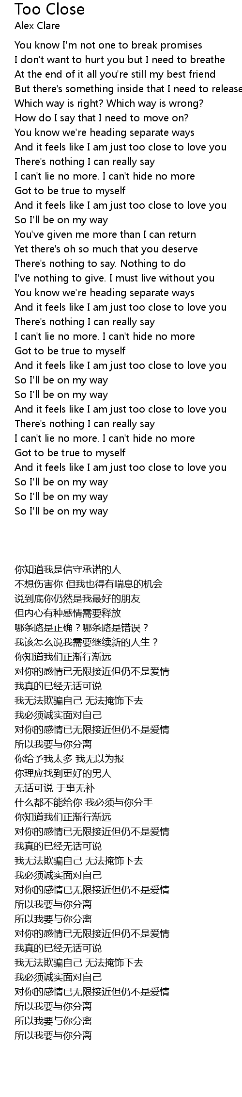Too Close Lyrics