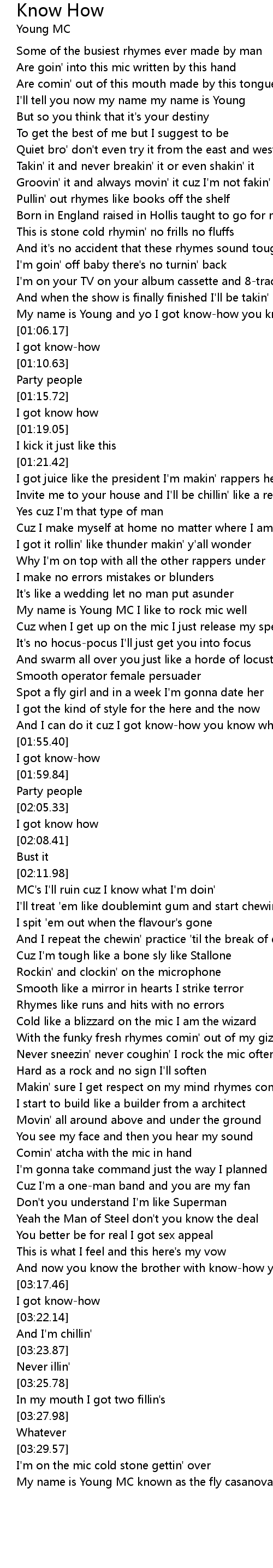 And I can do it cuz I got know-how you know what I'm sayin' |