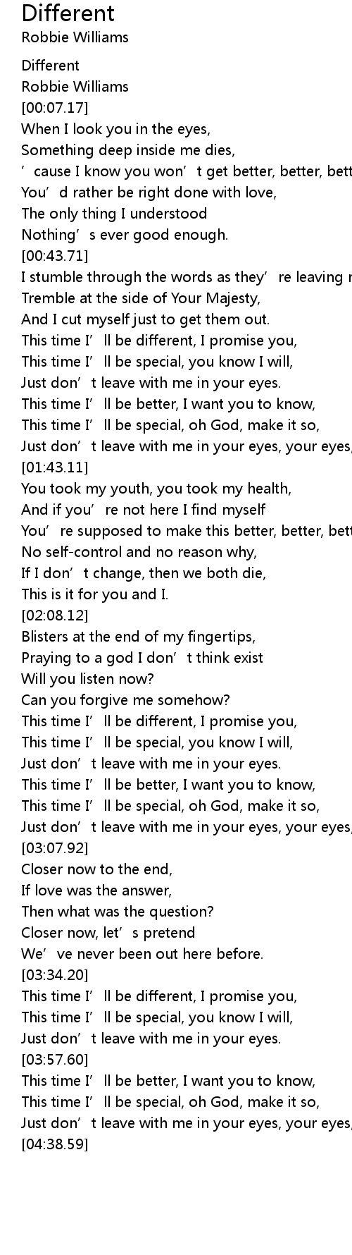 | [03:37.87] | This time I’ll be different, I promise you, |