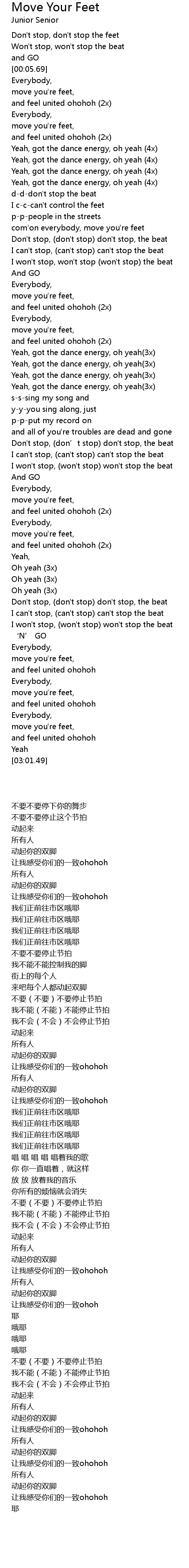 | [00:00.45] | Don' t stop, don' t stop the feet |