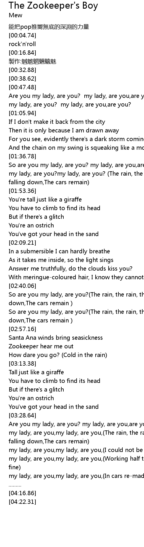 | [00:57.38] | my lady, are you? my lady, are you, are you? |