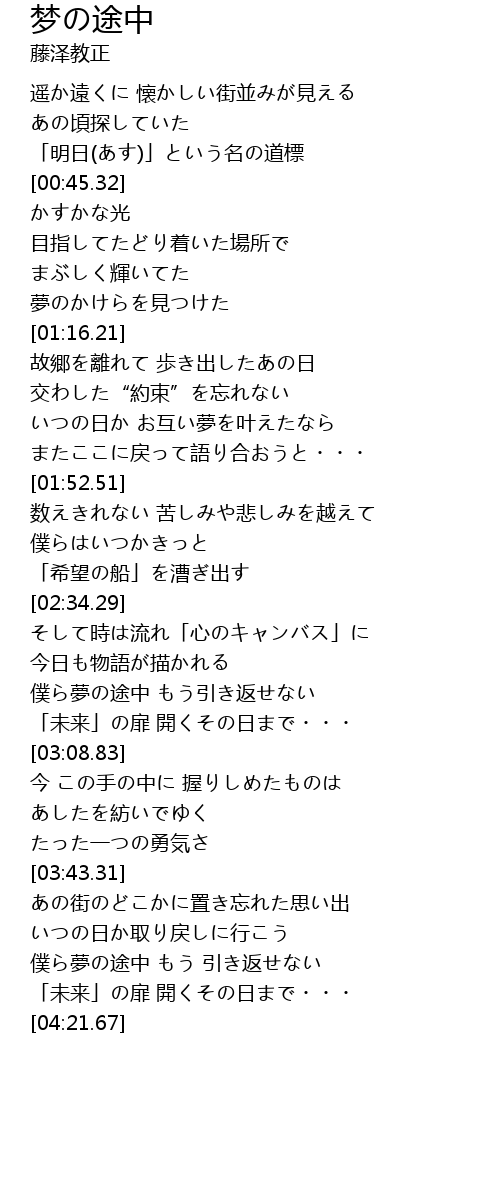 | [04:00.44] | 僕ら夢の途中 もう 引き返せない |
