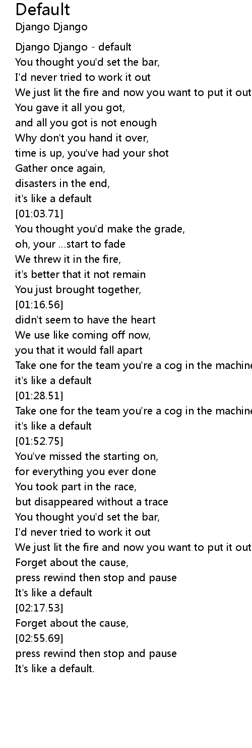 | [00:01.14] | Django Django default |