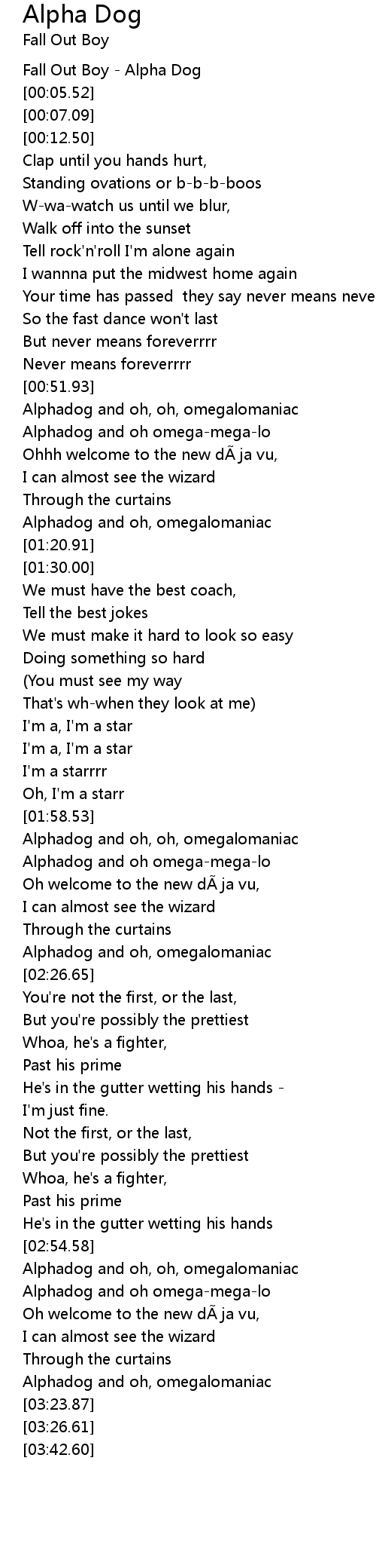 | [00:01.93] | Fall Out Boy Alpha Dog |