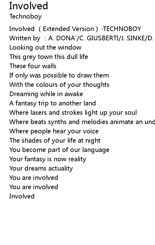 | [00:00.465] | Involved (Extended Version)-TECHNOBOY |