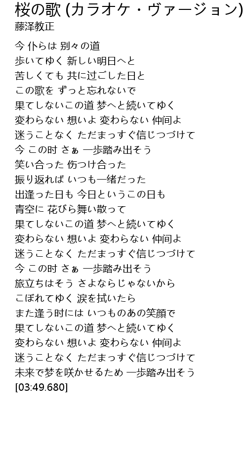 | [02:38.710] | 旅立ちはそう さよならじゃないから |