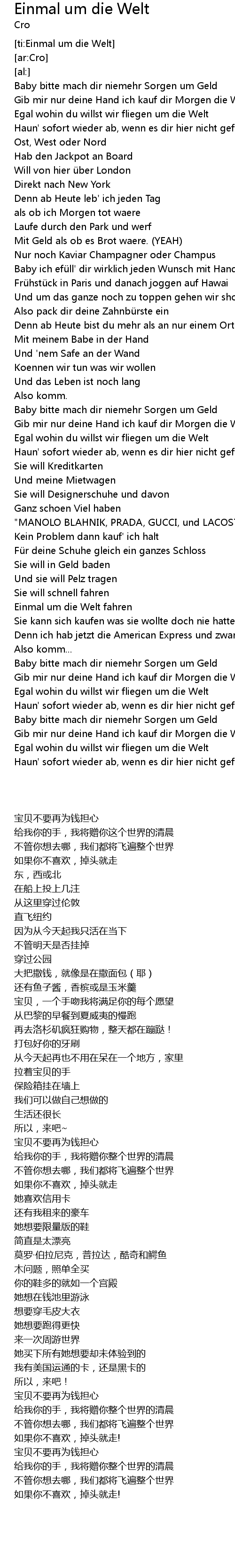 | [01:48.13] | Egal wohin du willst wir fliegen um die Welt |