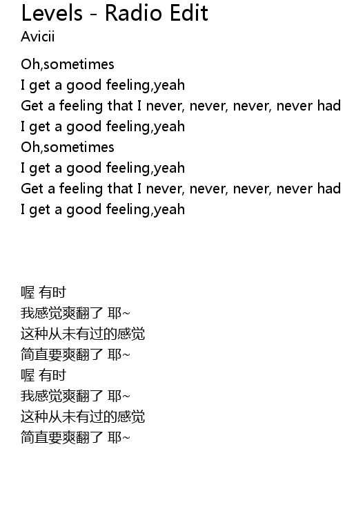 | Song | Levels - Radio Edit |