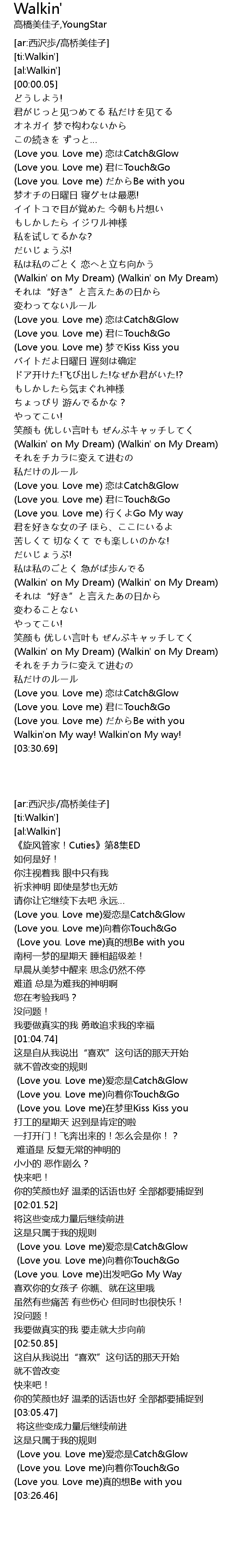 | [03:26.46] | Walkin'on My way! Walkin'on My way! |